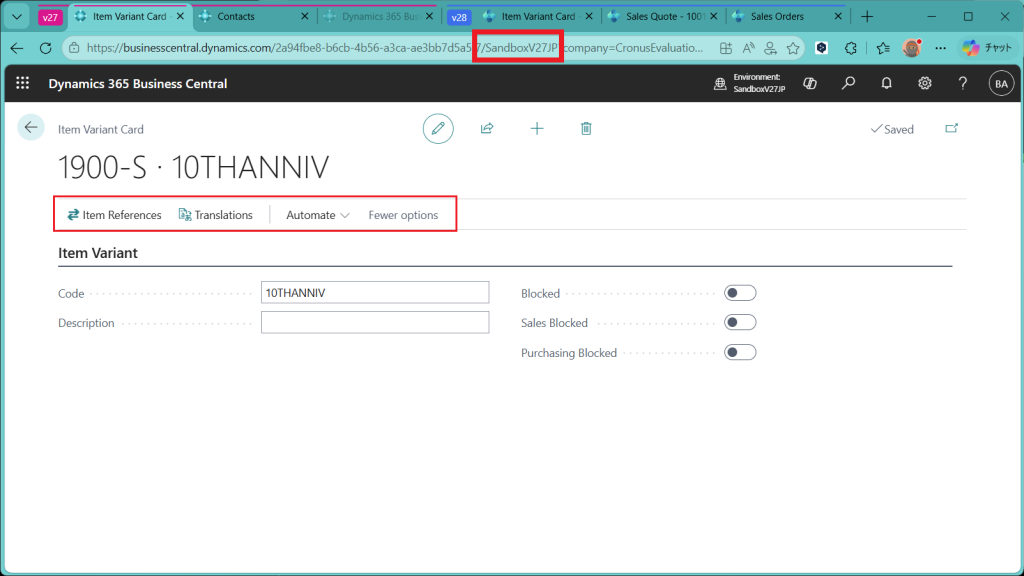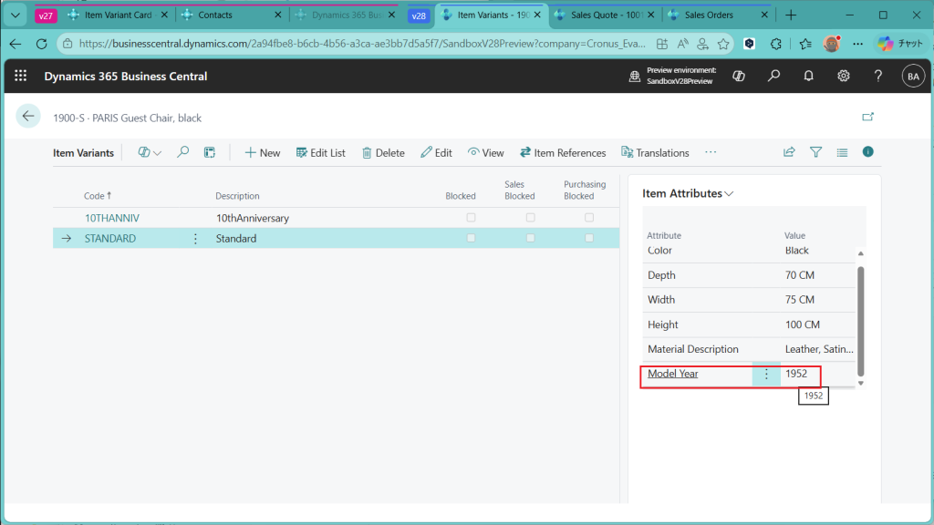 では実際に挙動を見ていきましょう。品目バリアントを呼び出すところまでは前回の記事(D365BC 品目バリアントに画像を追加 | IT長のネタ帳)を参照してください。