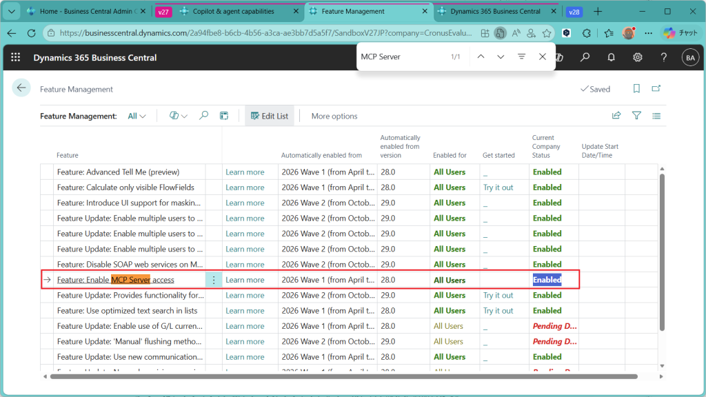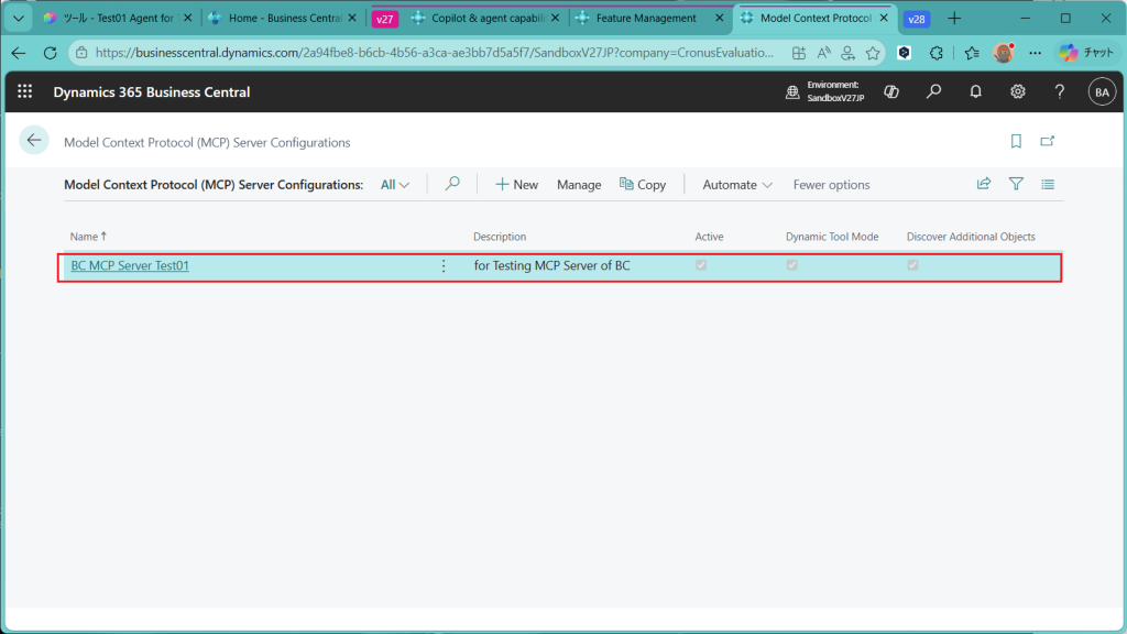 2025 Release Wave 2 で Business CentralのMCPサーバー機能がリリースされて半年ほど経ちました。そろそろ色々と安定してきたみたいなので動かしてみたいと思います。昨秋時点では有償環境でしか設定できなという情報がありましたが、今回確認したところ設定完了できました。フリートライアルライセンスだとエージェントの公開はできないのですが、動作の確認はできました。