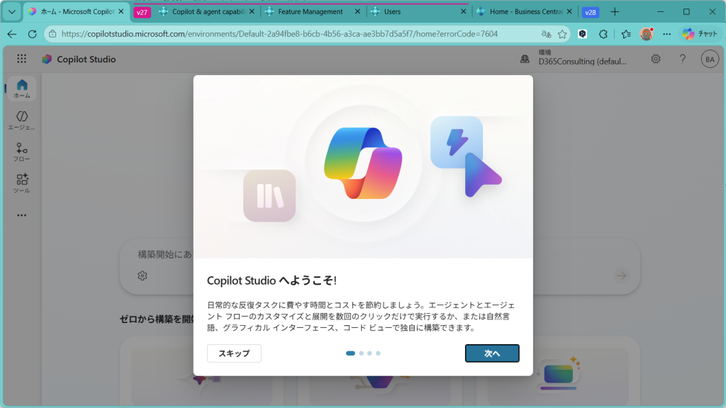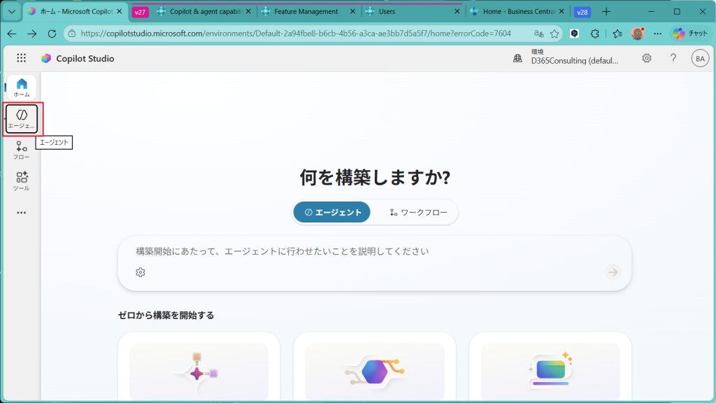 Copilot Studioのホーム画面が開きました。