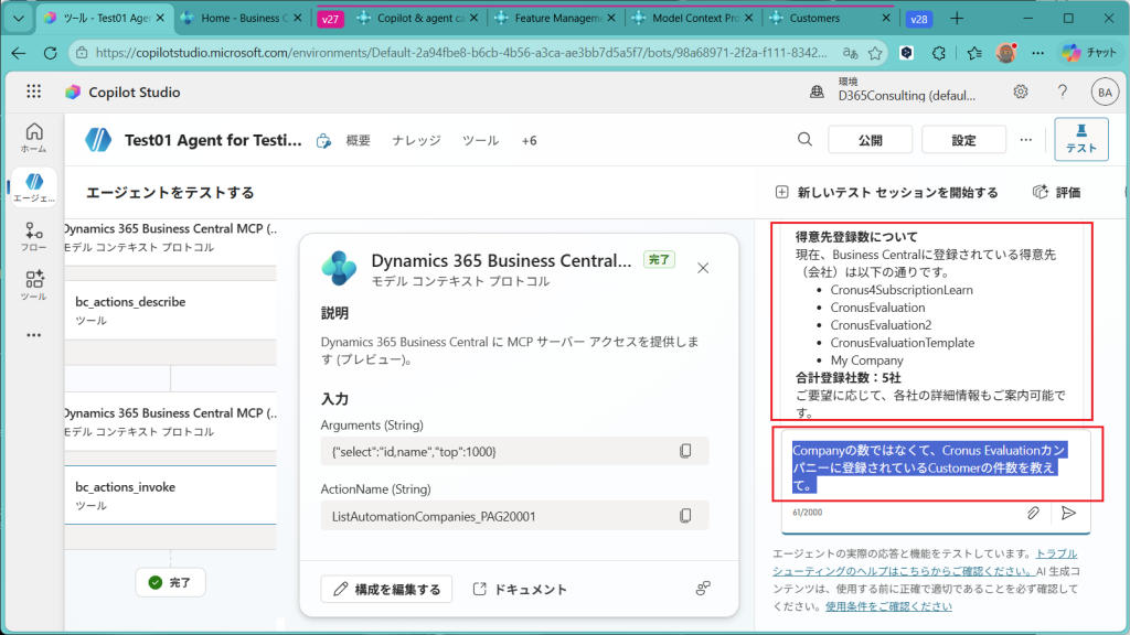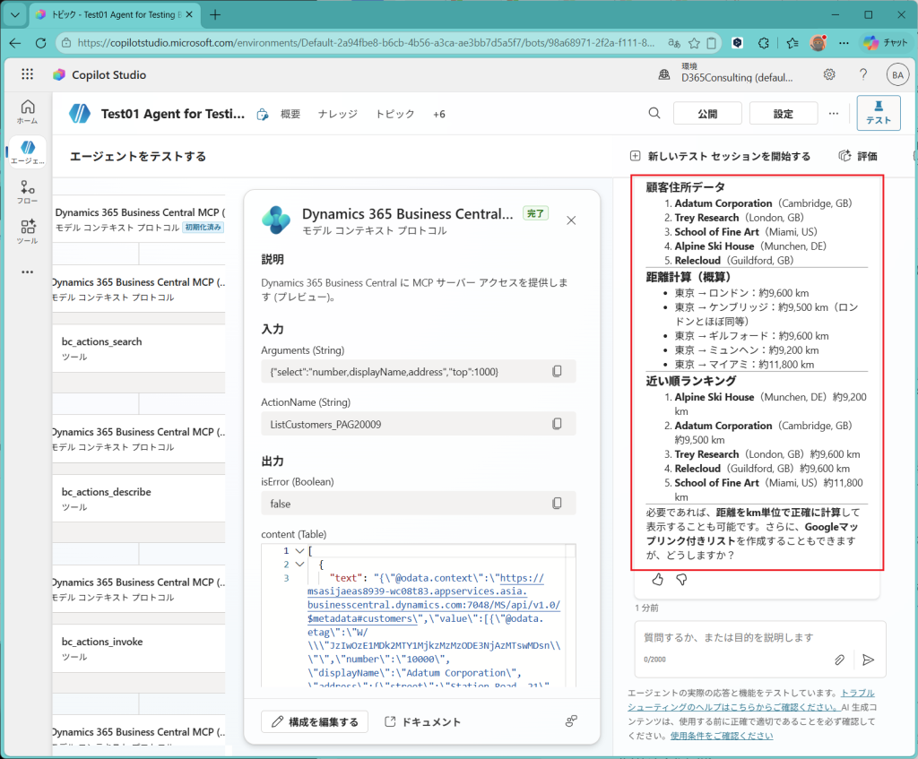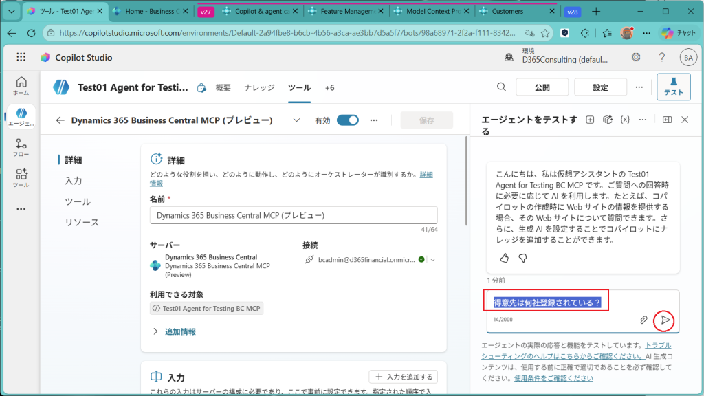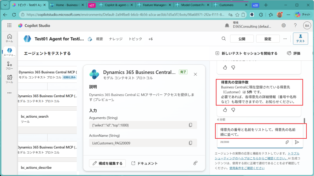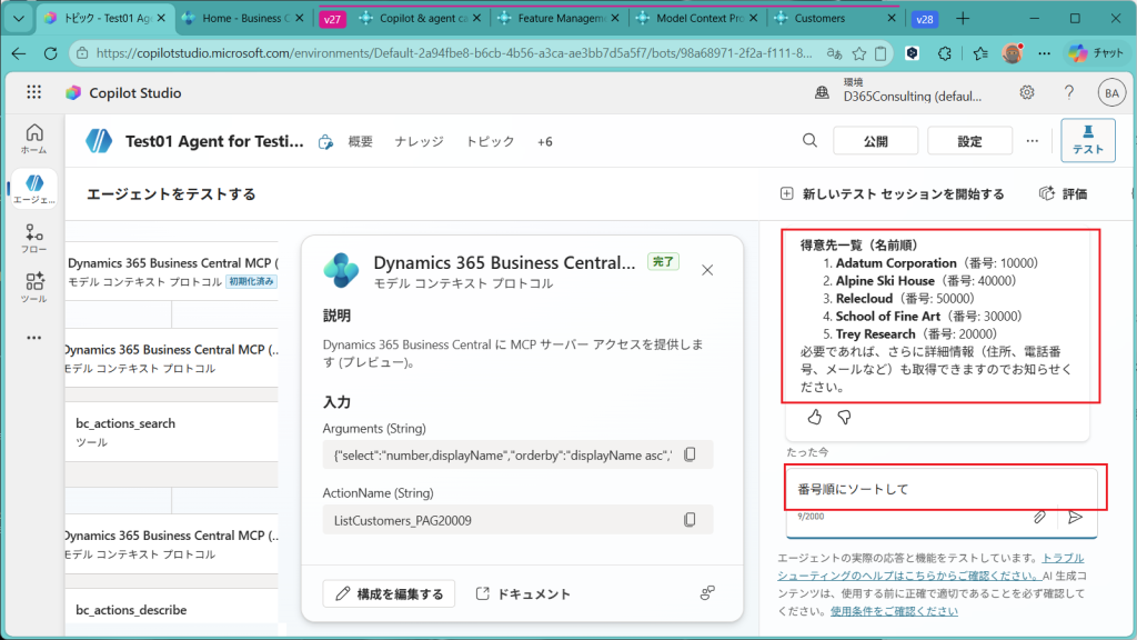 次回は、今回作成したAgentを公開してBCへn問い合わせを実施してみようと思います。