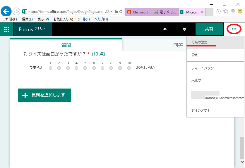 Formsのアンケート機能について前回の記事「Office365のForms機能でWildな意識調査アンケートを作成する。」を参照。