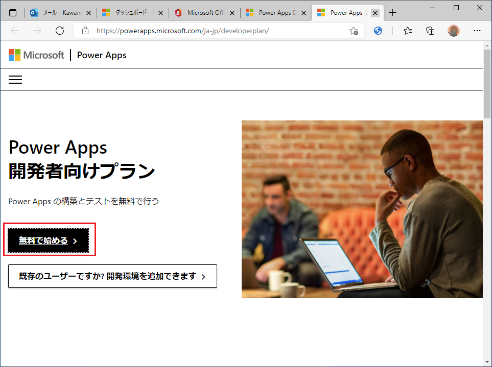 Power Apps Developer Planの公式説明が以下のサイトに記載されていますので、こちらを参照して手順を説明します。(2021/6/6時点でまだ日本語訳されていません)
