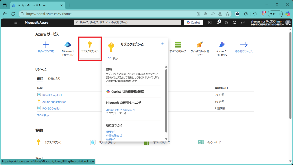 あきらめて従量課金しようかと思ってましたが、別のテナントに15,000円/月の無料クレジットがあり、最近は使わずにそのまま消えて行ってしまっていることを思い出し、これをBCのCopilot/Agent調査用テナントに移せないか?と思ったのが調査のきっかけです。ちなみにこの手順は会社でパートナー特典として付与されてたりするVisual Studio Enterprise Subscriptionについてもほぼ同じ手順で別テナントに移すことができたので、どちらかというとそちらのほうで参考にする方のほうが多いかもしれません。やっていることは「サブスクリプションの移動」なので、原理的にはAzureクレジットが無償かどうかによらずお金を出して購入したクレジットも別テナントに移動できるはずです。